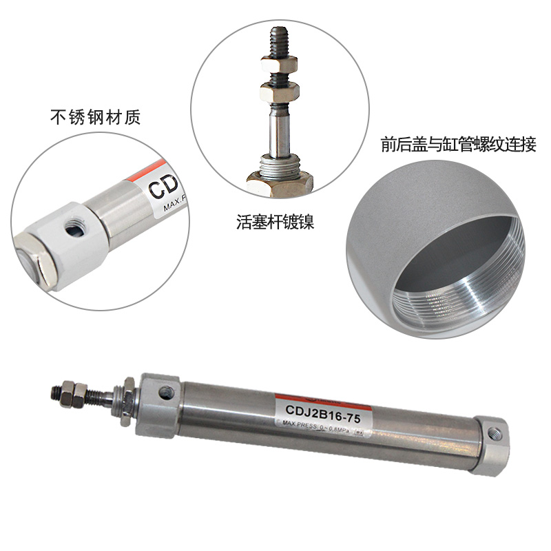 1、CDJ2B迷你氣缸可帶氣緩沖,適合搬送前面投影面積小的氣缸;