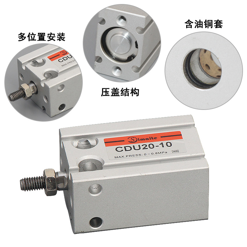 4、CDU系列氣缸,使用壽命長,氣動(dòng)氣壓低,可以多個(gè)氣缸并在一起固定,有效節(jié)省安裝空間。