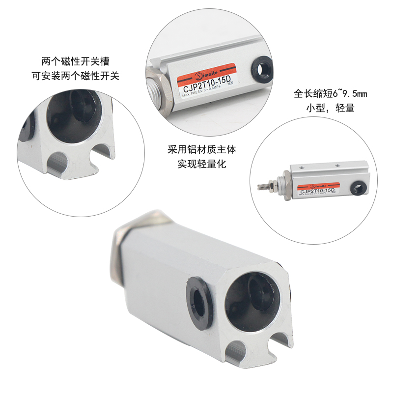 3、CJP2系列針型氣缸采用鋁材質(zhì)主體,與以前的CJP相比實(shí)現(xiàn)輕量化。