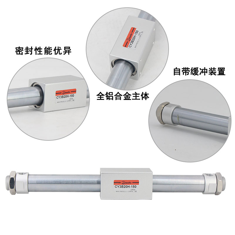 2、無桿氣缸CY3B密封性能佳,活塞腔與滑塊隔開,防止灰塵與污物進(jìn)入系統(tǒng),延長氣缸的使用壽命,
