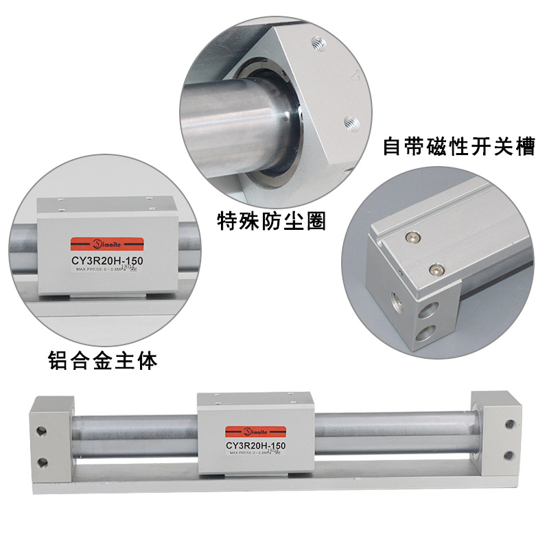 1、斯麥特生產(chǎn)的無桿氣缸CY3R材質(zhì)使用鋁合金材質(zhì),耐腐蝕,使用壽命更長;
