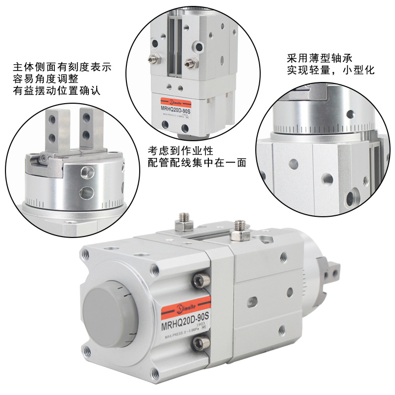 3、MRHQ手指氣缸已解除由各元件單體的組合(擺臺(tái)+附件+氣爪)所產(chǎn)生的配管,配線的搖擺;