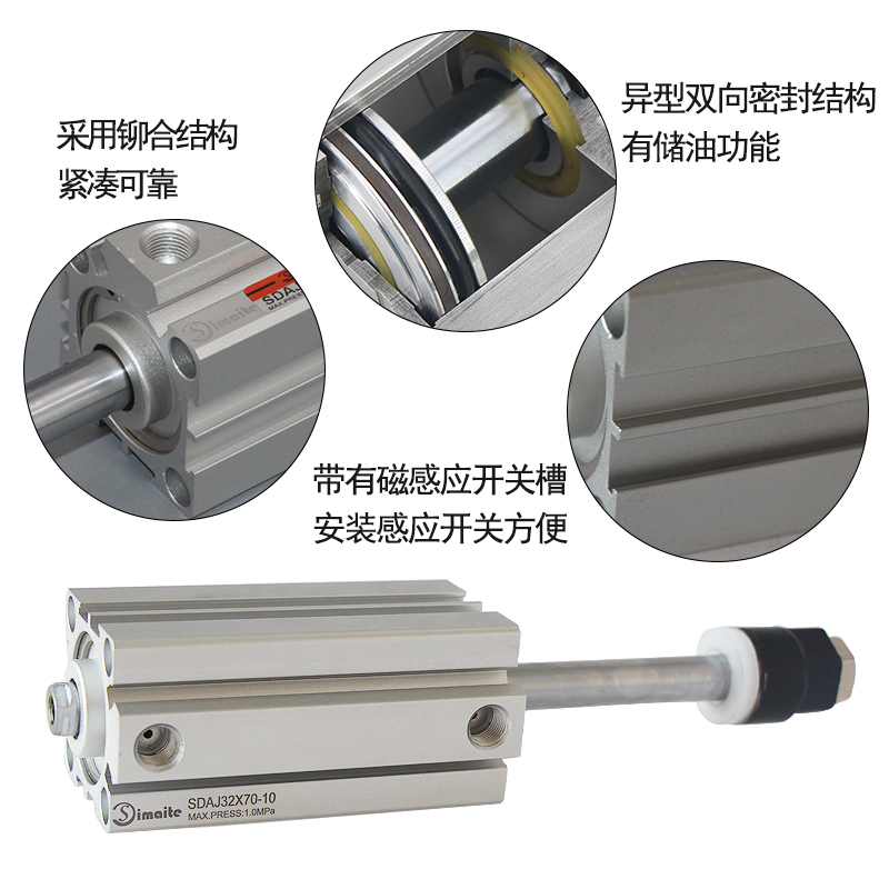 1、薄型氣缸缸體與后蓋,活塞與活塞桿采用鉚合結(jié)構(gòu),緊湊可靠;